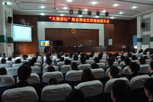 为深入学习贯彻党的十八大和十八届三中、四中、五中、六中全会精神,深入学习贯彻习近平总书记系列重要讲话精神,持续加强中国特色社会主义和中国梦宣传教育。3月24日上午,滑县法院邀请河南省委宣传部理论教育讲师团,在一号审判庭组织开展了“大豫讲坛”滑县理论宣讲基地报告会。