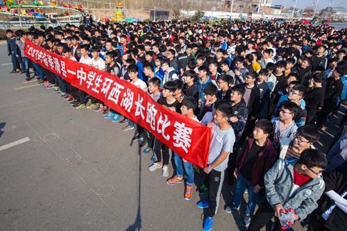3月14日,在滑县西湖湖畔1000余名师生参加了“2017年春季滑县一中学生环西湖长跑比赛”活动。