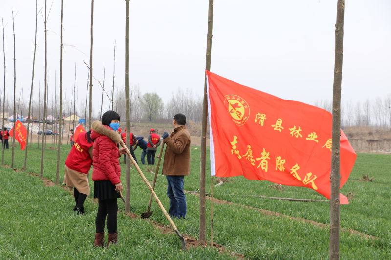 3月13日上午,林业局在滑州西湖东岸组织开展义务植树活动,来自政府办、林业局、工商局、党校、审计局、统计局、机关事务管理局等多个县直单位的100余名干部职工参加了此次活动。在植树现场,大家有的扶苗,有的培土,干劲十足,经过一上午的奋战,五百多棵泡桐树栽植整齐,为滑州西湖增添了一片生机勃勃的绿色。