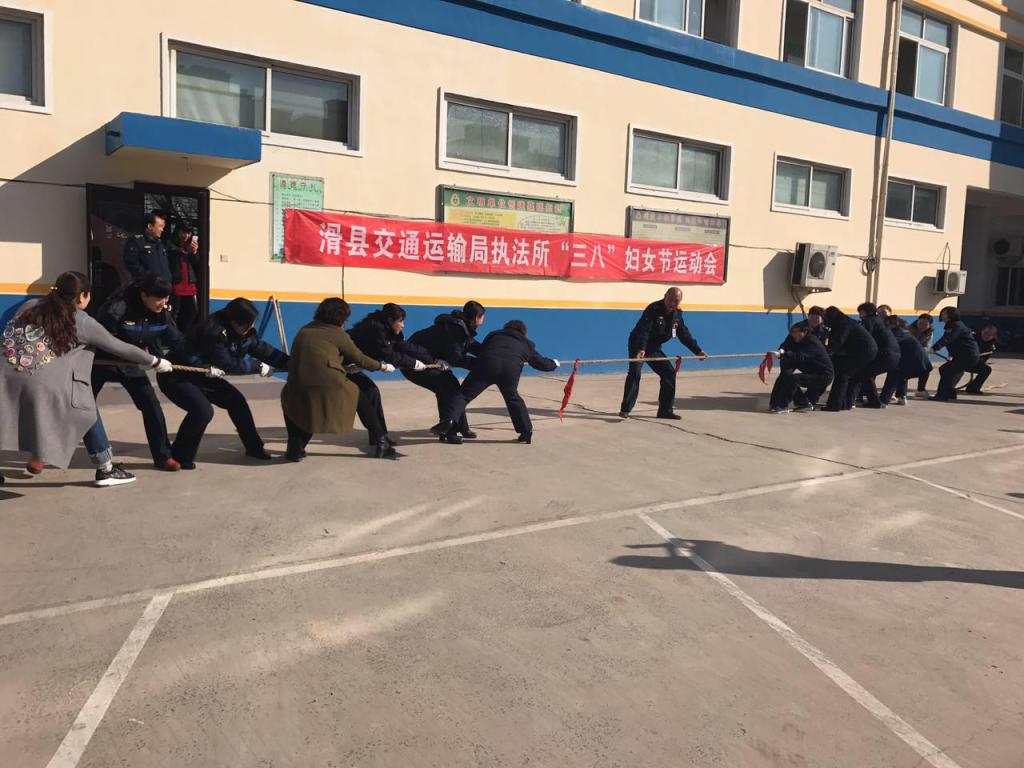 县交通局局机关开展了“三八妇女节”健康知识讲座,普及女性健康知识,传播健康养生方法;县农村公路管理所、县道路运输管理局和县交通运输局执法所开展了庆“三八”文体活动,举行跳棋、跳绳、拔河、托乒乓球等比赛,发扬了“团结拼搏、开拓进取、与时俱进,无私奉献”的精神;滑县汽车站志愿者服务队开展妇女儿童保护法规宣传活动,宣讲法律知识和法律咨询服务等形式,维护妇女合法权益,构建和谐幸福家庭。