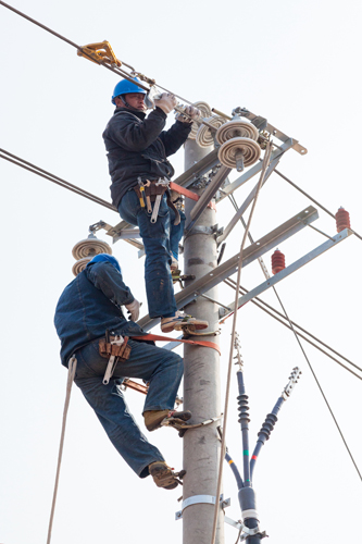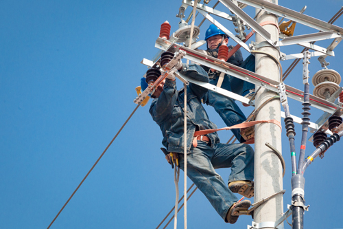 3月1日,滑县电力公司8名电力工人正在老店镇马兰线路2号杆处进行线路改造作业,滑县2017年新一轮119个中心村升级改造工程正如火如荼的进行,随着此项工程建设的深入,将切实提升滑县农村用电质量,为群众提供高品质电力供应。