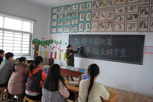 二、加大宣传,增强防范意识。通过召开班子会、教师会、学生会等形式,学习教育部等九部门联合印发的《关于防治中小学生欺凌和暴力的指导意见》文件精神,结合具体事例,向学生介绍了什么是欺凌,怎样预防欺凌,教育学生要珍惜友谊,不以大欺小,不以强欺弱,要与人为善、互相帮助、远离欺凌、加强自我保护意识。
