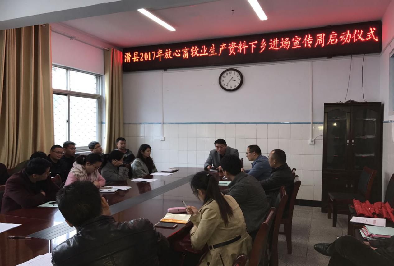 近日,滑县2017年放心畜牧业生产资料下乡进场宣传周活动启动仪式在滑县畜牧局正式举行,这标志着我县以“放心畜牧业生产资料进乡村 质量兴牧保安全”为主题的“畜牧业生产资料下乡进场宣传周”活动正式启动。 滑县畜牧兽医综合执法各中队负责人、饲料兽药生产经营企业代表、规模养殖户代表及屠宰企业代表参加了启动仪式。