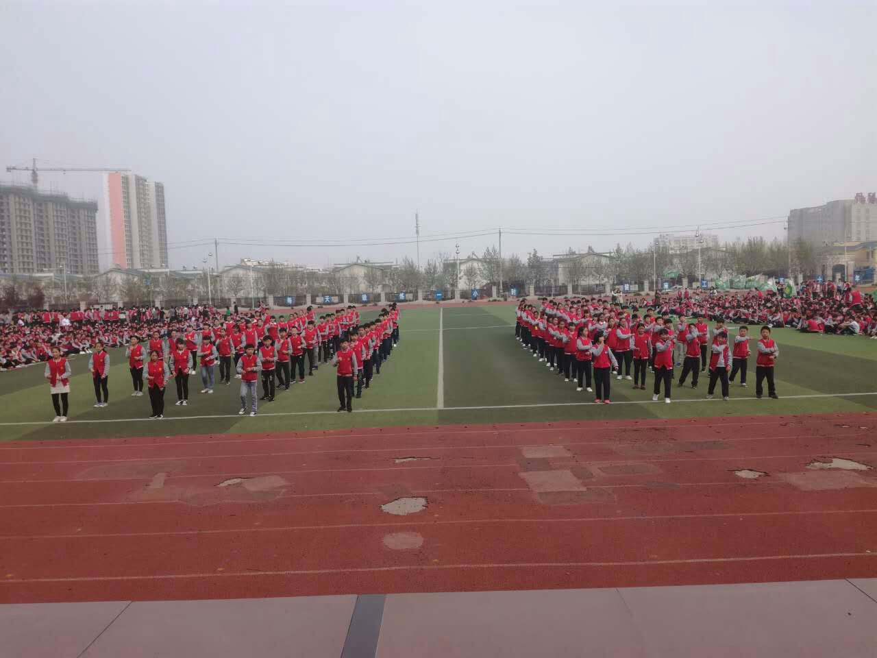 为体现体育大课间对学生的锻炼价值,近日,英民中学的同学们满怀豪情、精神饱满的举行了搏击操会操比赛。