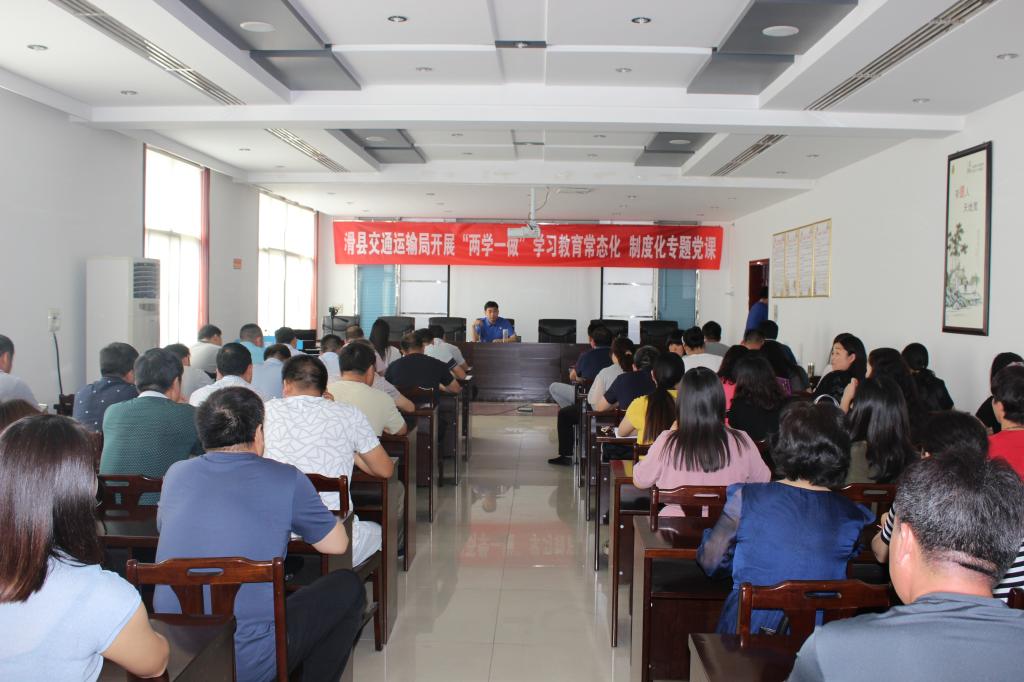 6月27日,县交通运输局开展了“两学一做”学习教育专题党课活动。局党组书记、局长刘自敏以《“两学一做”学习教育常态化制度化》为题,为全体机关干部职工讲授了一堂生动的党课。