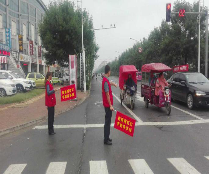 22日一大早,志愿者们来到人流量大的县医院路口,配合交警指挥行人自觉遵守信号灯,非机动车不走机动车道,不乱停、乱放、乱靠车辆,不越斑马线、停车线,礼让斑马线等,积极引导广大市民文明出行。