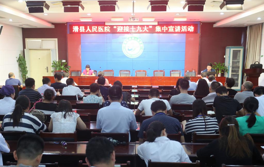 8月21日,在党的十九大即将胜利召开之际,滑县县委“迎接十九大”宣讲团走进滑县人民医院,开展集中宣讲活动。医院领导班子和百余名党员代表在现场聆听了宣讲团成员、县委党校讲师朱振宇题为《满怀信心喜迎十九大召开》的宣讲报告。
