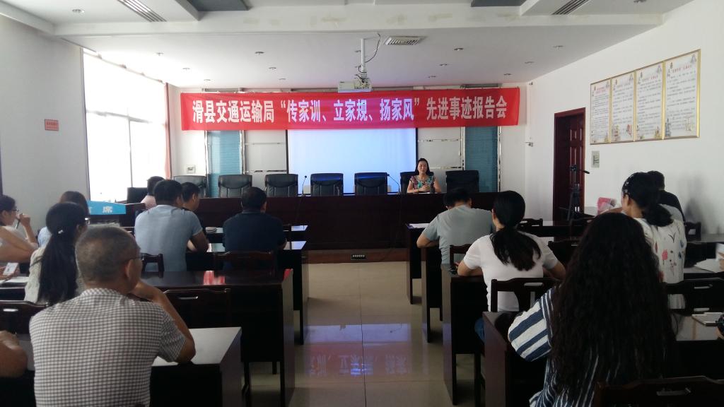 为动员广大干部职工参与家庭文明建设,推动形成爱国爱家、相亲相爱、向上向善、共建社会主义家庭新风尚,8月11日上午,滑县交通运输局在局五楼会议室开展了“传家训、立家规、扬家风”先进事迹报告会。局领导班子、局机关全体参加了报告会。