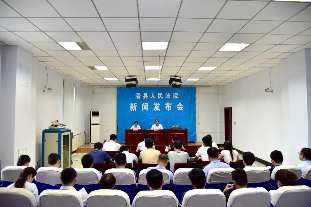 7月31日上午,滑县法院召开新闻发布会,通报“子夜雷霆出击”执行专项活动情况和打击拘执犯罪情况。新闻发布会由滑县法院新闻发言人汪书英主持,法制日报、河南法制报、滑县电视台等媒体记者及人大代表、政协委员、群众代表受邀参加新闻发布会。
