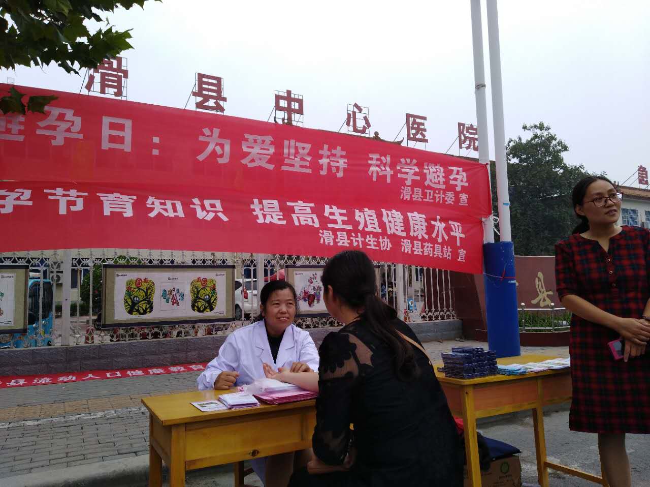 为广泛普及避孕节育科学知识,增强广大育龄群众安全避孕意识和能力,减少非意愿妊娠,降低人工流产,9月29日上午,滑县卫计委组织计生协、药具站、医疗机构等单位的志愿服务者在中心医院门口开展以“为爱坚持,科学避孕”为主题的世界避孕日宣传志愿服务活动。