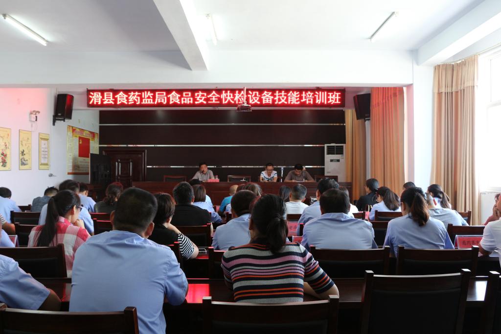 9月7日上午,滑县食药监局在局机关四楼召开食品安全快检设备技能培训班,23个基层监管所的50余名业务骨干参加此次培训。