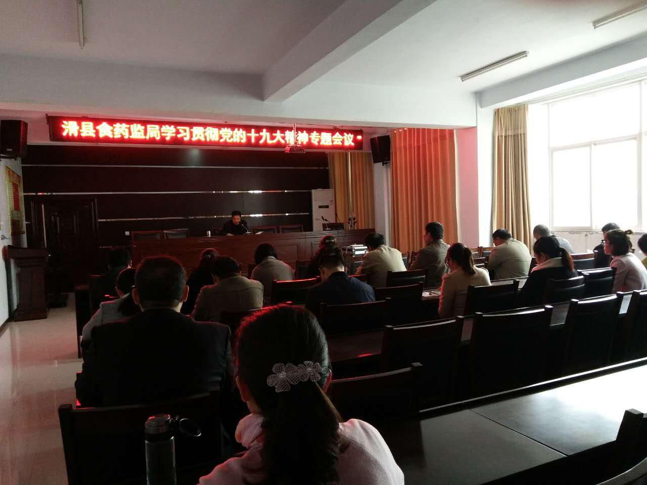 10月31日下午,滑县食品药品监督管理局在局机关四楼会议室召开学习贯彻党的十九大精神专题会议,会议传达了党的十九大精神,宣读了《党的十九大精神传达提纲》。