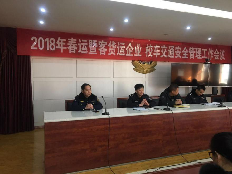 1月23日上午,县交通运输局联合交警队、安监局在交警队四楼召开2018年春运暨客货运企业、校车交通安全管理工作会议。全县22家客货运企业及有校车的幼儿园负责人参加了会议。