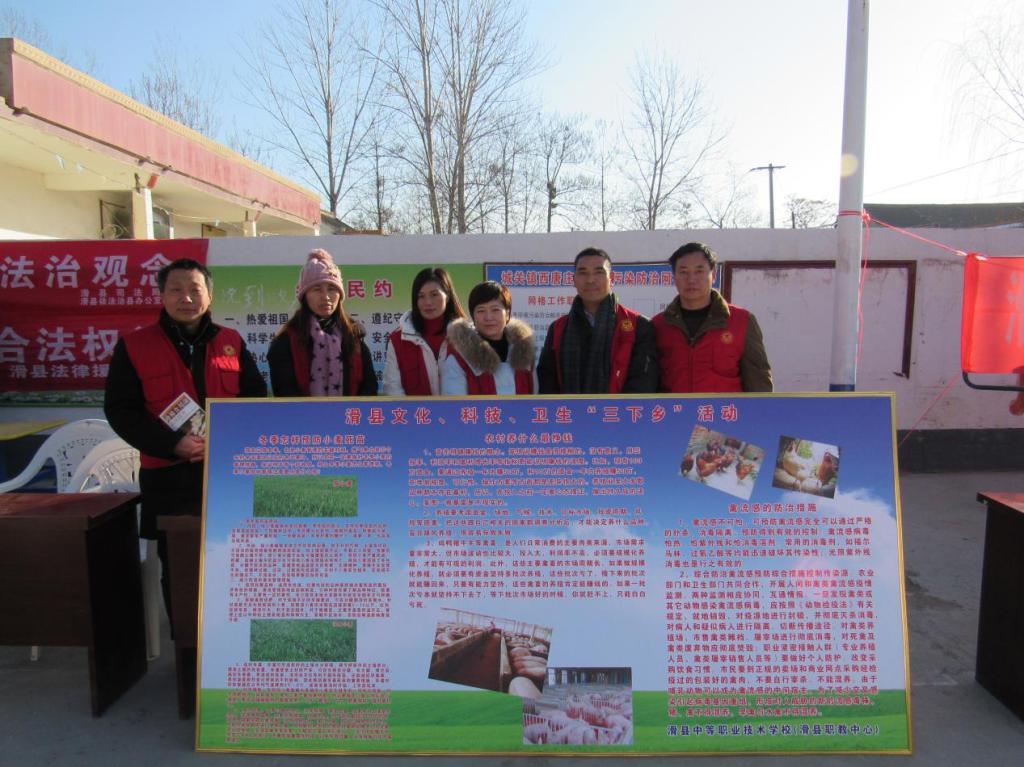 为深入学习贯彻党的十九大精神,充分发挥文化科技卫生“三下乡”活动的品牌效应和示范作用,做好2018年春节期间“推进移风易俗 弘扬时代新风”系列活动,丰富农村文化生活,1月10日上午,教体局利用教育系统自身优势,组织机关党员志愿者带领职教中心农业技能专业教师到我县城关镇西唐庄村开展“三下乡”活动。