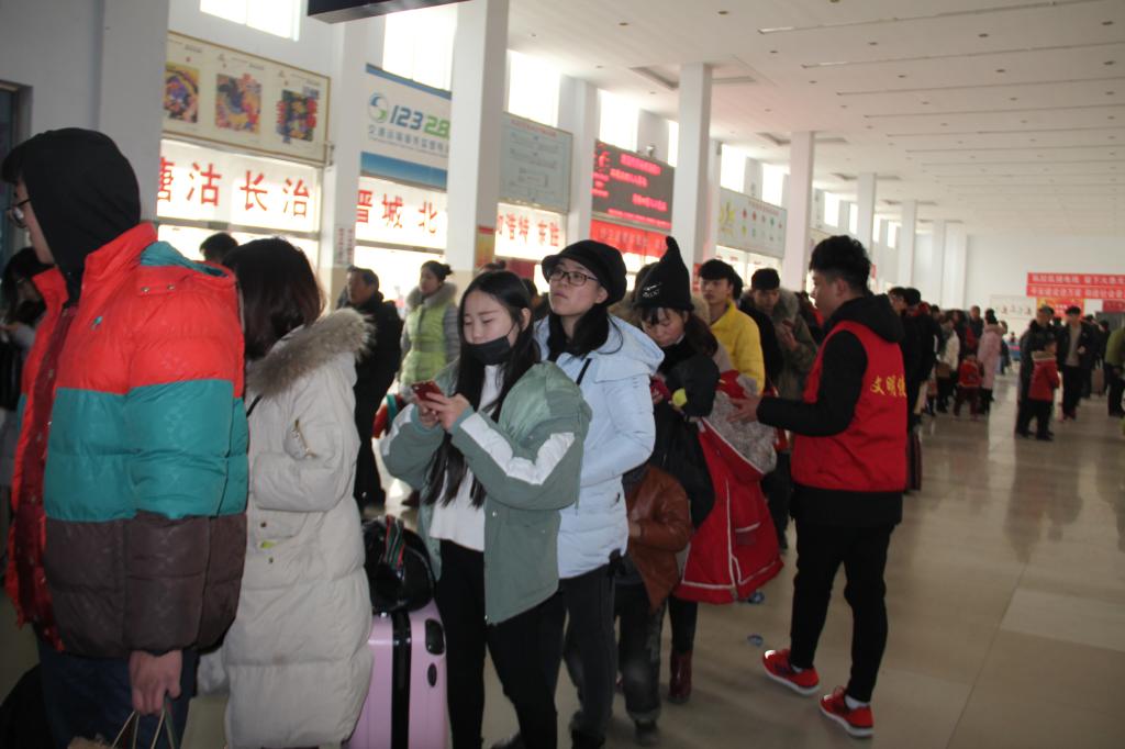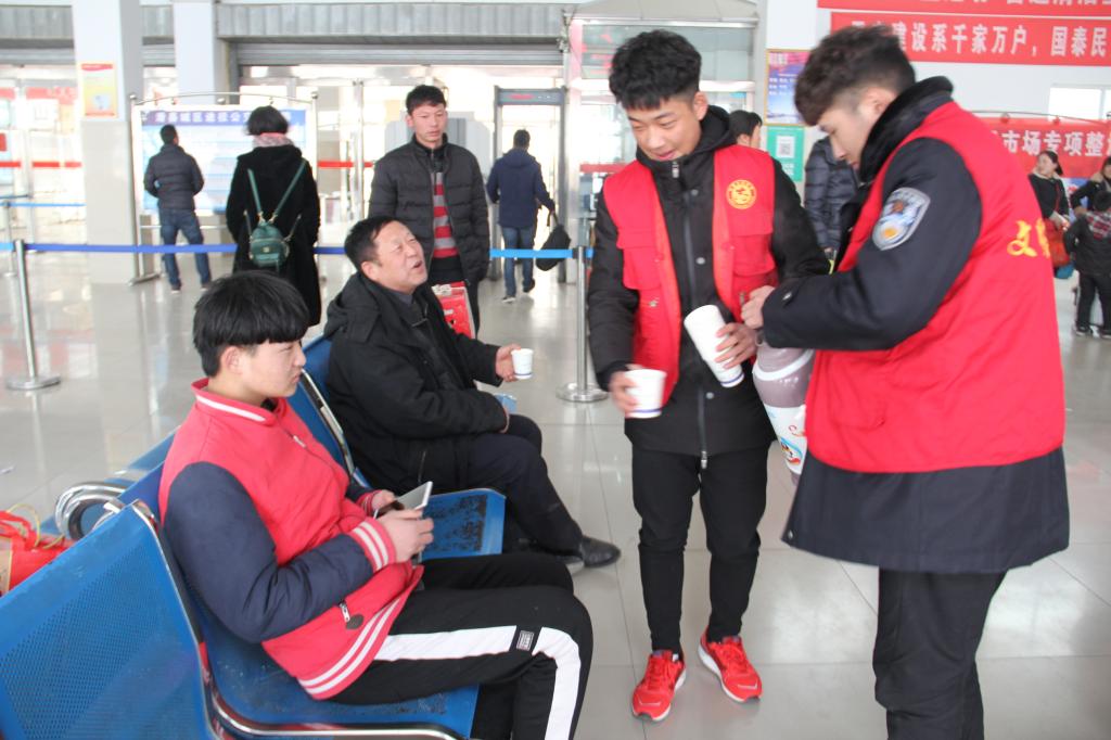 志愿者们面带笑容以饱满的热情穿梭在旅客中间,他们有的在为旅客提供乘车咨询服务;有的在帮旅客提携行李;有的在维持购票秩序等等。同时,志愿者们还准备了热水、药品等应急物品。他们通过一系列的志愿服务活动,在寒冷的天气里为旅客送上了节日的祝福,让广大旅客切实感受到了旅途的温暖和温馨。
