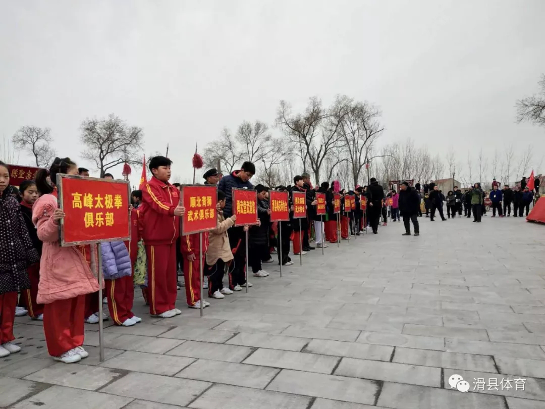 3月1日,2018年河南省第十四届中原大舞台武术展演活动在道口镇大王庙举行,活动(滑县分会场)由河南省体育局、河南省文明办、河南省农业厅联合主办,河南省武术运动管理中心、滑县人民政府承办,县教体局协办,来自全县各武术协会、俱乐部共20支代表队近500余名武术爱好者参加了本次武术展演活动。河南省武术运动管理中心副主任宋合三,河南省武术段位办主任王锋等领导参加了开幕式。