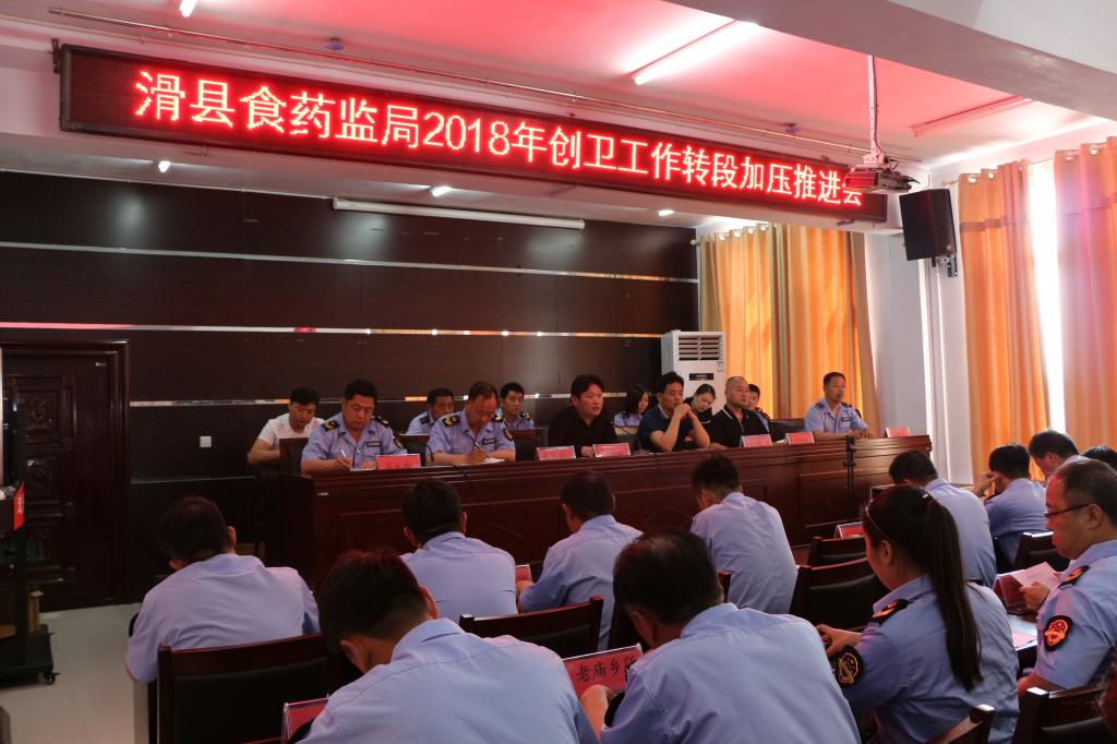 根据创卫工作转段要求,为进一步提升食品生产经营创卫整改效果,推进创卫工作,5月2日下午,县食药监局在局机关四楼召开2018年创卫工作转段加压推进会,全系统140余人参加了会议。