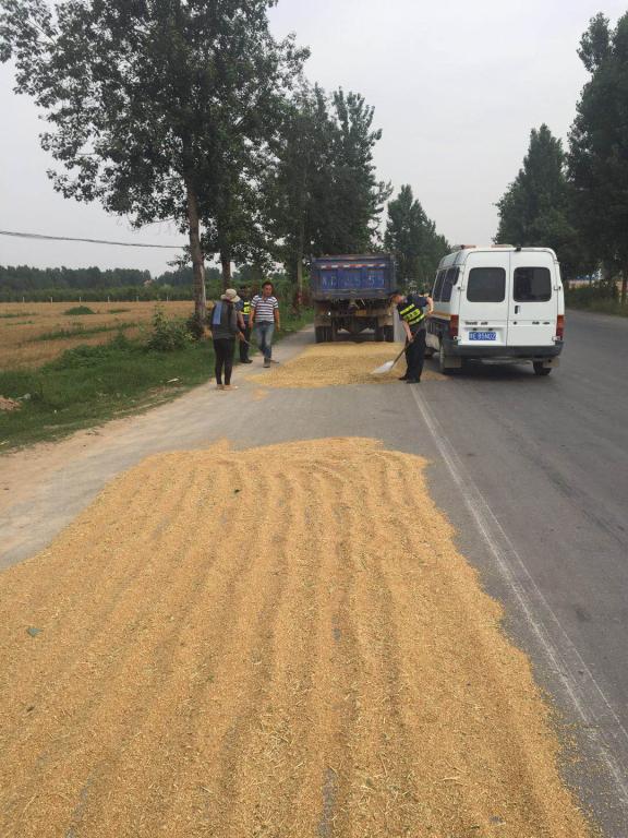 随着小麦成熟,国省道打场晒粮现象开始出现,同时摆放的砖块、玻璃瓶、木棍占道影响车辆通行,干扰交通秩序,造成交通堵塞。针对此情况,县交通运输局抽调执法人员,通过巡回广播宣传、发放告知书等方式加强群众对公路打场晒粮危害的了解,执法中队“趁早、抓少”集中治理,对多次劝告仍未搬移的进行强制清理,确保县域内213省道、快速通道等主干道道路畅通,杜绝交通事故隐患发生。此举赢得了过往司乘人员的点赞和社会各界人士的一致好评。