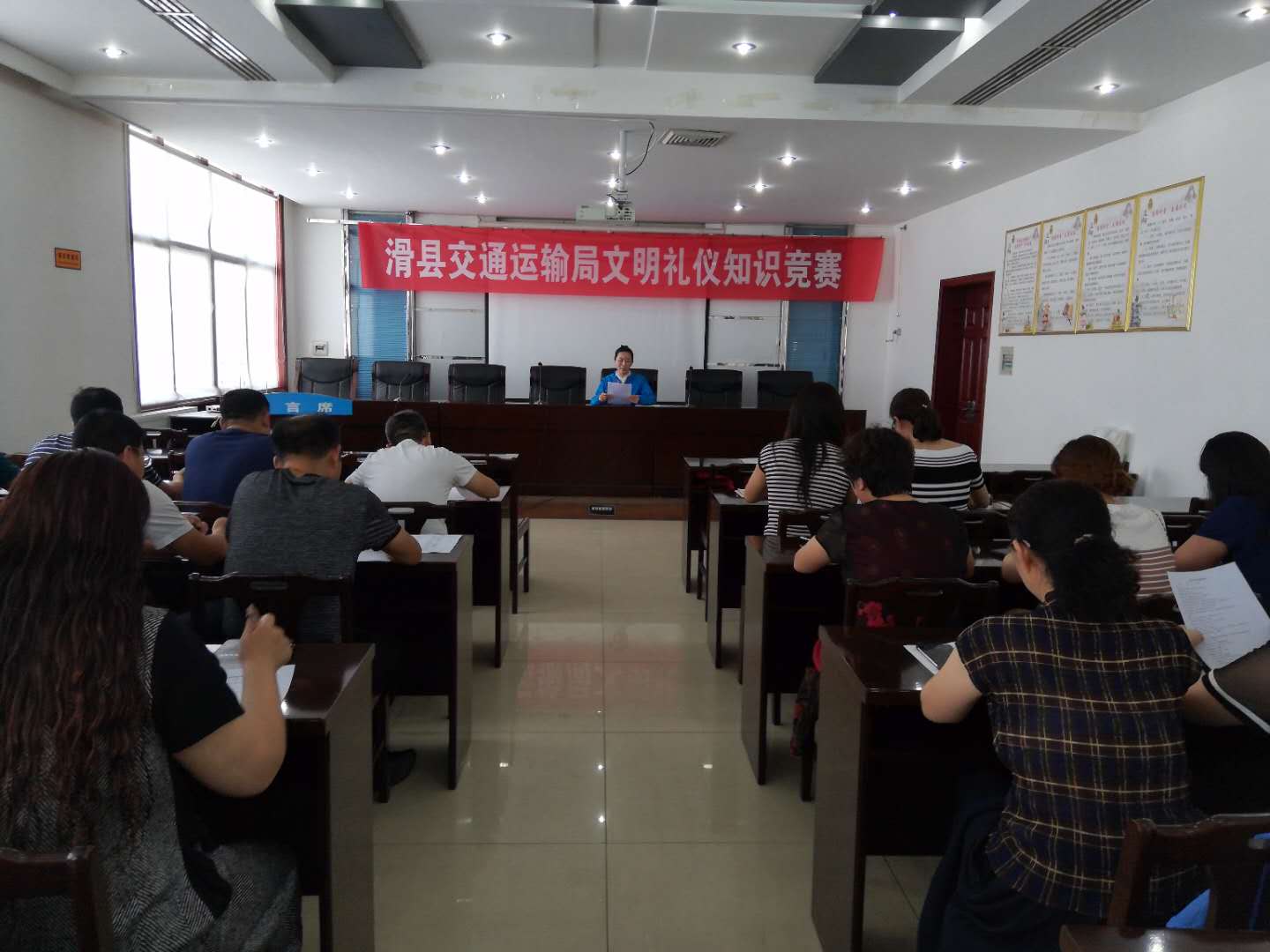 为进一步弘扬中华民族优秀传统文化,引导干部职工养成学礼仪、知礼仪、行礼仪的好习惯,全面提升机关干部职工文明素养和机关文明程度,7月24日上午,滑县交通运输局在局五楼大会议室举行了文明礼仪知识竞赛,50余名干部职工参加了本次知识竞赛活动。