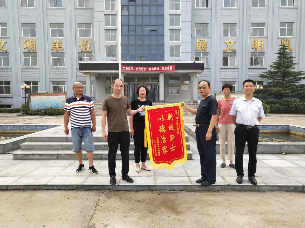 近日,滑县新区九街村委会代表来到县城市管理综合执法局,送来一面鲜红的锦旗,上写“新城卫士以德治容”的大字,简单朴实的话语,却表达出了群众对这段时间以来创卫工作的肯定和满意。