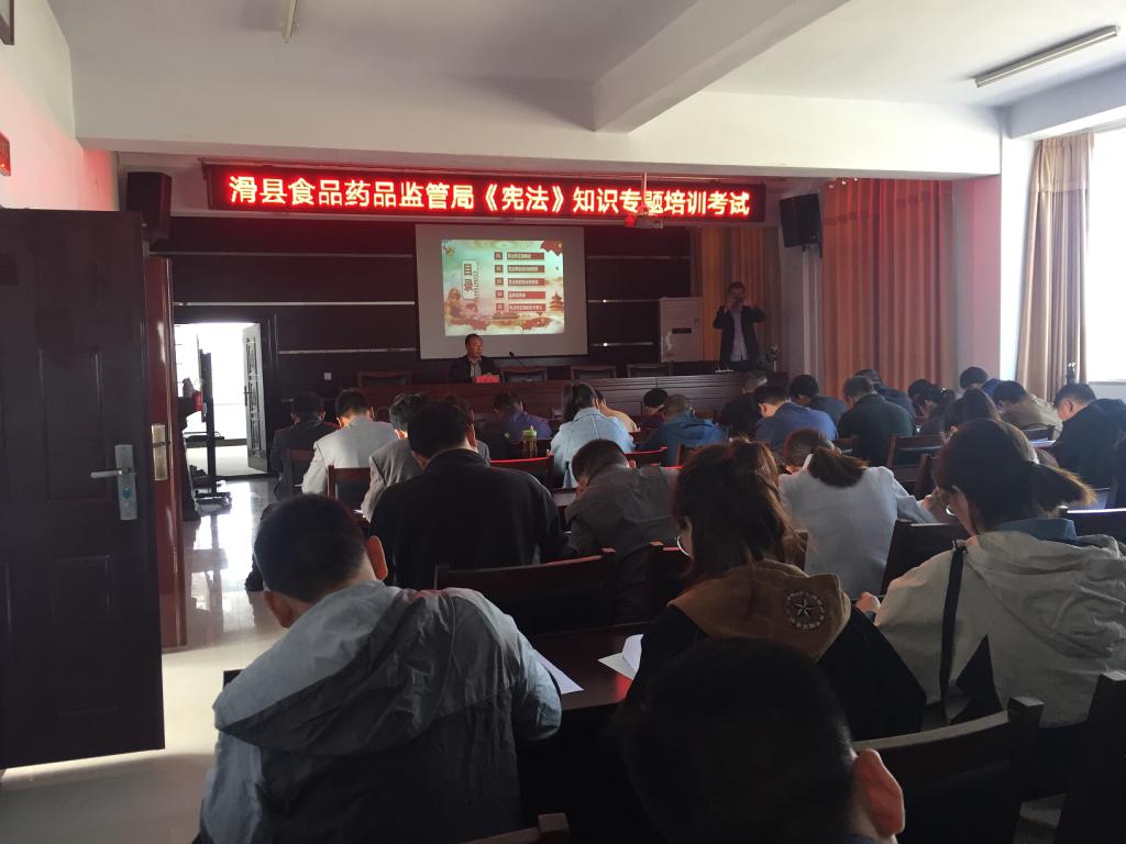 为进一步提高党员干部宪法意识和法治观念,弘扬宪法精神,维护宪法权威,县食药监局于10月23日上午在局会议室组织开展了宪法知识培训及考试活动。