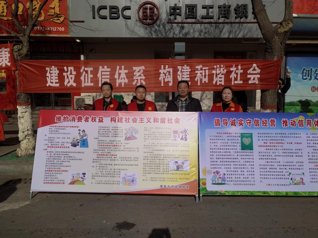 为进一步推动我县社会信用体系建设工作,让滑县群众更多地了解社会信用体系建设,树立信用观念。3月15日,滑县自然资源局组织志愿者在镇主要街道开展以“信用让消费更放心”为主题的社会信用体系宣传活动。