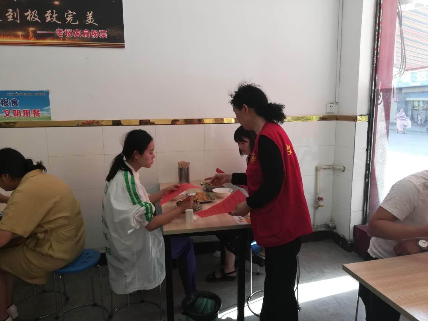 活动中,党员志愿者向就餐人员、饭店管理人员发放《文明餐桌倡议书》,向他们宣传文明用餐相关礼仪和文明用语,提倡“倡导节约、安静就餐、文明饮酒、餐后打包”理念。提醒他们在生活中要改掉陋习,讲究科学饮食,保持勤俭节约、艰苦奋斗的精神,将文明餐桌活动渗入到人们的意识中,引导大家学会节约粮食、文明用餐,养成健康文明的生活习惯,为滑县创建全国文明城市作出贡献。