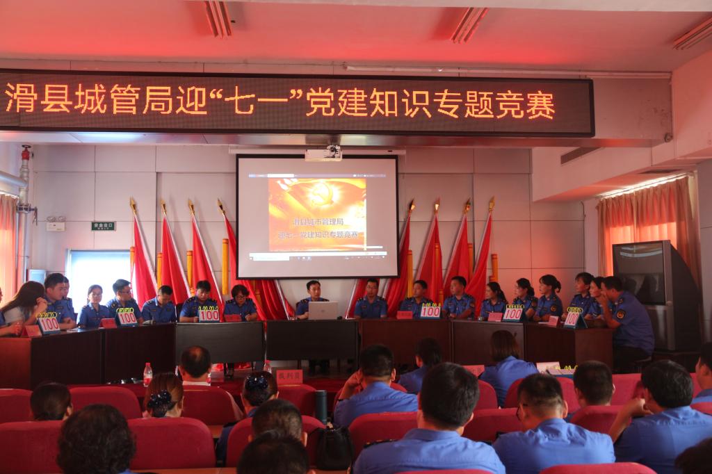 为庆祝中国共产党成立98周年,深入学习贯彻习近平新时代中国特色社会主义思想和党的十九大精神,持续推进学习型党组织建设,进一步增强广大党员干部学党章、强党性、守纪律、作表率的意识,6月27日下午,滑县成管理局举办了庆“七一”党建知识竞赛活动,城管局班子成员、各党支部书记、局系统党员代表等共计60余人现场观看了比赛。