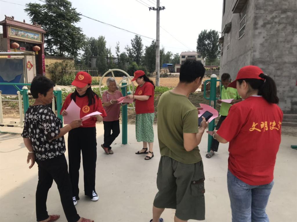 为了进一步加强文明村镇建设,破除陈规陋习,弘扬新风正气,在农村倡导勤俭节约、反对奢侈浪费的社会风气,营造社会清风、和谐家风、文明乡风,6月17日上午,滑县中心医院的志愿者们来到了结对帮扶贫困村王庄莫庄村,到田间地头村内村外开展“移风易俗”志愿宣传活动。
