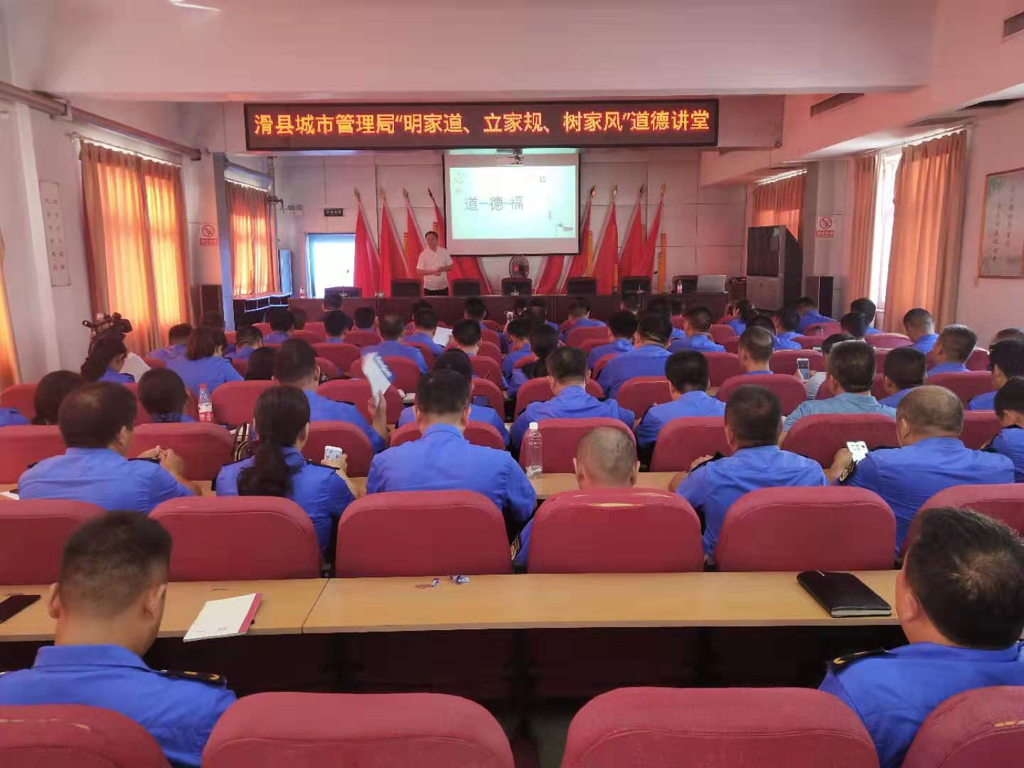 为大力弘扬家庭美德,树立良好家风,充分发挥家庭在道德建设中的基础作用,推动社会主义核心价值观融入日常生活,7月25日,滑县城市管理局举办“明家道、立家规、树家风”道德讲堂,局机关及局属各单位110余名干部职工参加。