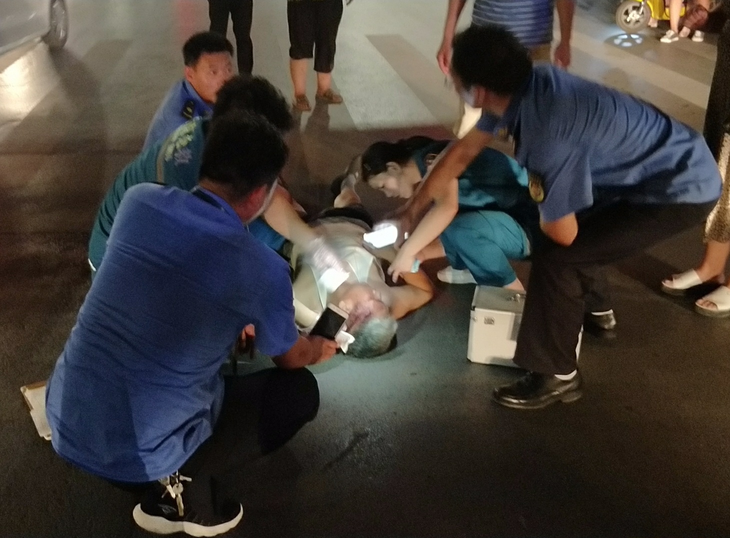 7月24日晚上8点30分左右,滑县道口人民路三八岗红绿灯处发生感人一幕,一位老人被撞倒地受伤后,被巡逻至此的滑县城市管理局执法三大队队员发现,大家一起上前救助。