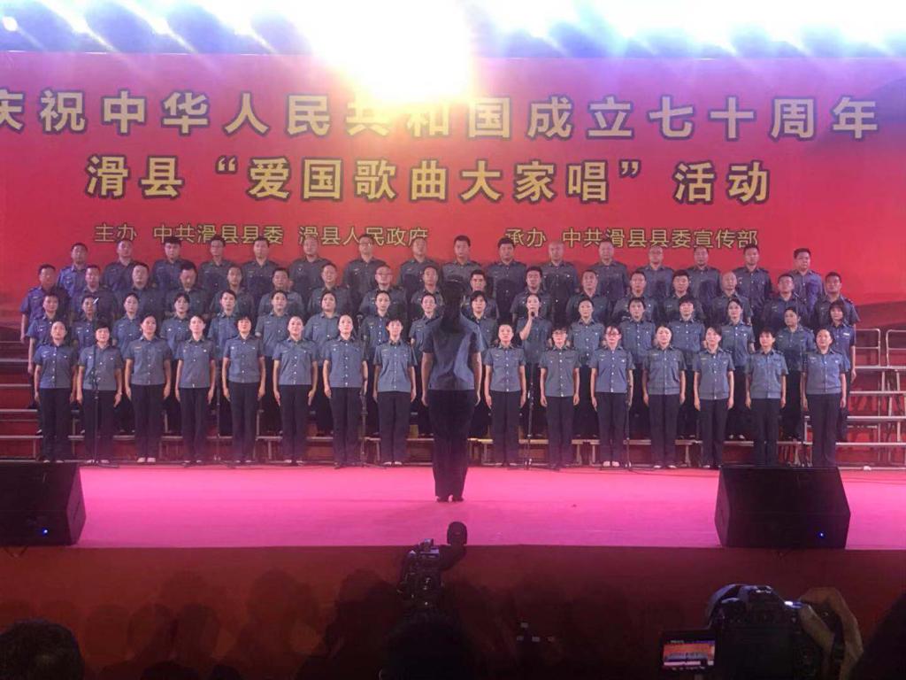 8月27日至30日晚上,我县在新区体育场隆重举办了庆祝中华人民共和国成立 70 周年滑县“爱国歌曲大家唱”活动,县交通运输局积极组队参与,参赛曲目为《中国,中国,鲜红的太阳永不落》。