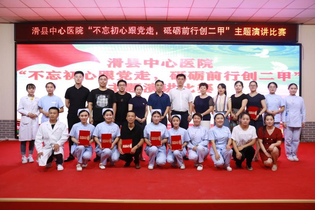 庆祝中国共产党建党98周年,迎接新中国成立70周年,7月31日滑县中心医院隆重举办了以“不忘初心跟党走,砥砺前行创二甲”为主题演讲比赛,院领导班子和全体员工到场参加比赛。