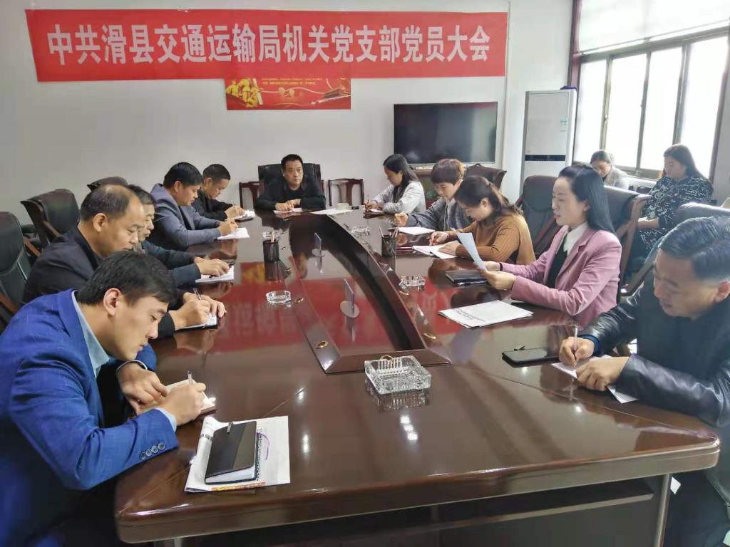 10月10日下午,滑县交通运输局召开机关党支部党员大会,会议由党组成员副局长王汉洁同志主持,其他党组成员、机关全体党员参加了学习。
