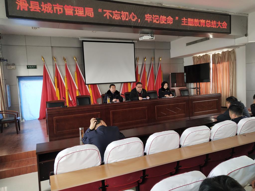 1月20日下午,滑县城市管理局召开“不忘初心、牢记使命”主题教育总结会议。局党组书记、局长刘现涛作总结讲话,党组成员杨立权主持,局属各党支部成员和机关全体人员参加会议。