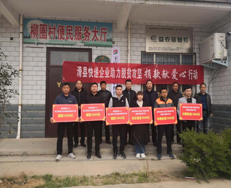 3月31日上午,在滑县交通运输局、邮政管理局的积极筹备和协调下,滑县同乐、申通、中通等快递物流公司及爱心人士,在滑县王庄镇柳圈村,积极开展“致富思源,扶危济困”捐款活动,爱心企业及爱心人士进行现场捐款,局党组成员、邮政管理局副局长冯朝云参加捐款仪式。