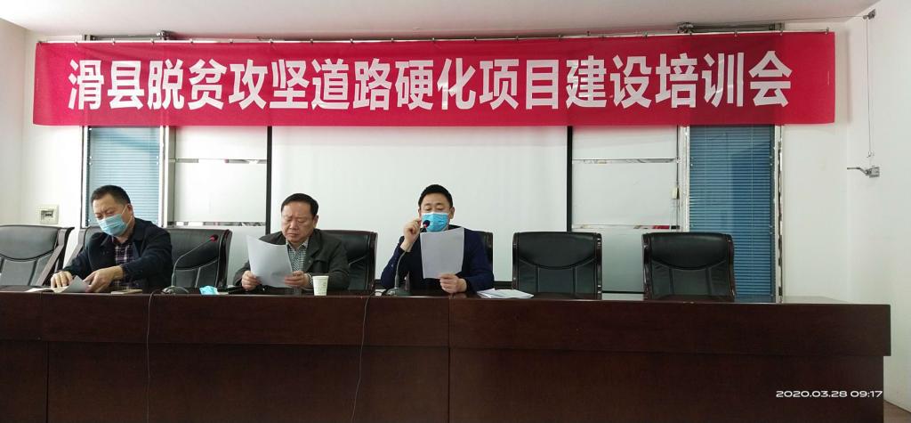 3月28日上午,由滑县扶贫办、滑县交通运输局组织的“滑县脱贫攻坚道路硬化项目建设培训会”在交通局五楼会议室召开,全县涉及乡镇主管领导、施工单位负责人、监理单位负责人近100余人参加了会议。