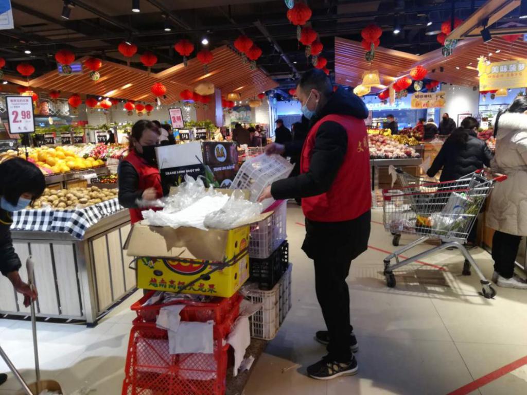 活动中,志愿者们身穿红马甲、配戴防护口罩,认真对购物人员进行测量体温、对手消毒、详实登记人员信息,维持购物秩序,向群众进行防控知识宣传,遵守疫情防控各项制度规定,自觉按照科学方法做好个人防护,坚决打赢这场疫情防控攻坚战。