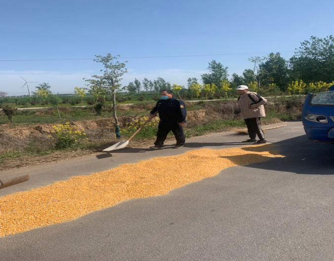 4月20日上午10时左右,滑县路域环境治理中队巡查至王郑路时,发现半坡店乡东明店村路边两处建筑堆积物,严重影响了公路交通及过往行人的人身安全,执法人员立即通知责任人将违法堆积物移除,执法人员巡查至S215时发现路边有违法占用公路晒粮现象,当即责令当事人进行了清理。