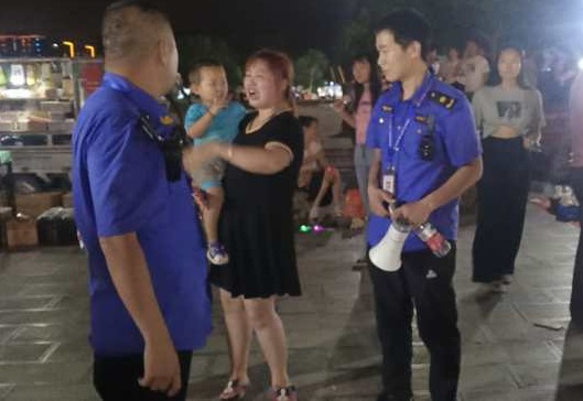 事情发生在6月27日晚9点半左右,滑县城市管理局市容管理第十执法大队大队长尚松正带领队员像往常一样在大云寺广场进行夜市巡查工作,突然一名女士神色慌张的向来求助,说自己带着两个儿子来逛夜市,由于自己一时疏忽,加上夜市人流量较大,一不小心跟两岁的小儿子在人群中走失了,希望咱城管队员能够帮忙其寻找。了解情况后,尚松队长立即放下手头的工作,带领队员开始对大云寺广场周边内外进行仔细寻找,并在广场商家摊位微信群里及时发布寻人启事,发动广大摊主的力量共同寻人。经过近半个小时的努力寻找,最终在一处摊位前找到了走失的男童,经确认后将孩子带回交到了其母亲手中。该女士在见到小儿子后,激动不已,再三向执法人员表示感谢,队员们纷纷摆手示意,继续投入到夜市的巡查工作中。