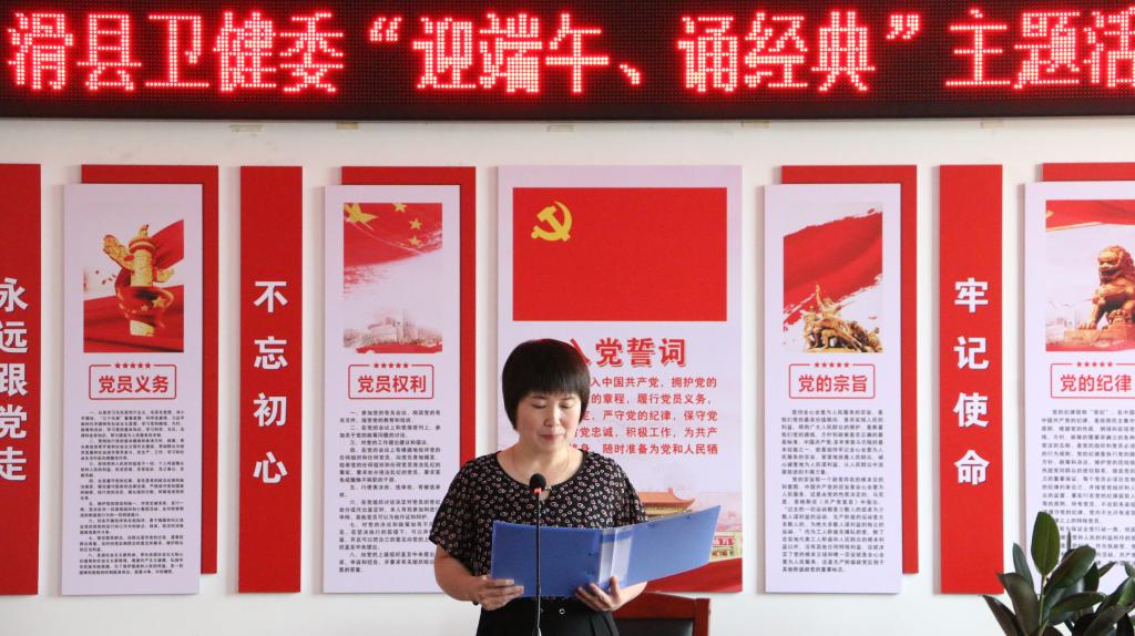 为迎接传统节日——端午节,更好地传承和弘扬中华民族传统文化,激发爱国热情,积极培育和践行社会主义核心价值观,进一步丰富干部职工的精神文化生活,6月24日上午,滑县卫健委举办了“迎端午、诵经典”活动。
