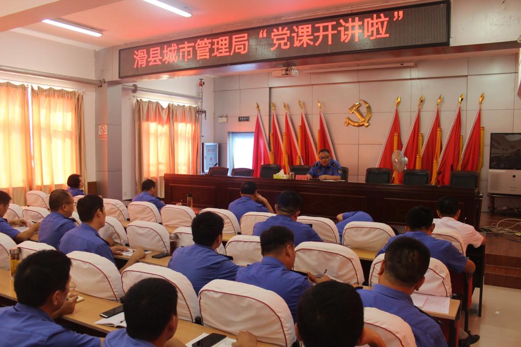为进一步提高党的建设质量和水平,按照市委组织部“党课开讲啦”活动安排部署和要求,7月31日下午,滑县城市管理局召开专题会议,由局党组书记、局长刘现涛作《守城管职业底线 廉洁自律促发展》专题党课。局领导班子全体成员、局各科室负责人和各党支部党员共130余人参加了会议。