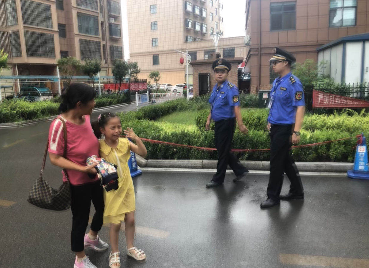 近期,滑县遭遇连续降雨天气,滑县城市管理局市容管理第三执法大队副队长李东东正带领队员邢计伟、郑森垚、杜鑫蕾在辖区防汛巡查时,在蔚然国际小区北口发现一名六七岁左右的女童站在雨地里哭,也没打伞,浑身都淋湿了,执法队员赶紧下车走到女童面前,小心安慰并耐心询问怎么回事?女童一边哭一边说:“是自已下了补习班,其他小朋友都走了,自已没人接,平时都是爷爷接她,今天天气不好,等了好久一直没人来接,就想自己走回去,可是找不到回家的路,迷路了”。