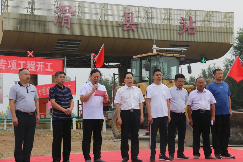 开工仪式由濮鹤高速管理处安新中心副主任马宏杰主持。首先,吴至奇做致辞,对滑县县政府、滑县交通运输局对滑县收费站改扩建工作的全力支持和工作人员的辛勤付出表示感谢;随后,滑县交通运输局李革局长发言,对滑县收费站改扩建工程的顺利开工表示热烈祝贺,并指出大广高速滑县站作为全县人民高速出行的重要通道,滑县县委、县政府高度重视此次改扩建专项工程。滑县站扩建专项工程不仅是贯彻落实交通运输厅“百站畅通”行动,更好服务滑县经济社会发展和人民群众出行的一件大事、一件喜事,更是对滑县对外形象,促进区域经济发展和交通形象的整体提升。滑县收费站扩建后将对滑县经济发展具有重要的推动作用,地方相关部门会积极做好沟通协调和服务保障工作。
