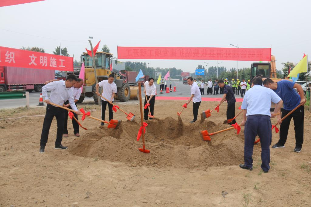 最后,在大家热烈的掌声中,为滑县收费站改扩建工程铲土奠基。