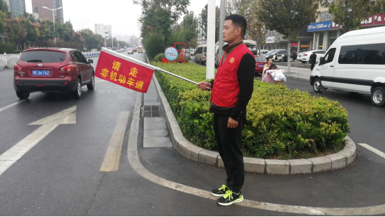 一是开展文明交通志愿服务活动。交易中心组织志愿者在大功桥桥东路口,手持文明交通指引旗,做好路口行人、非机动车的引导、劝导工作,维持交通秩序,确保群众安全,树立文明新风尚。