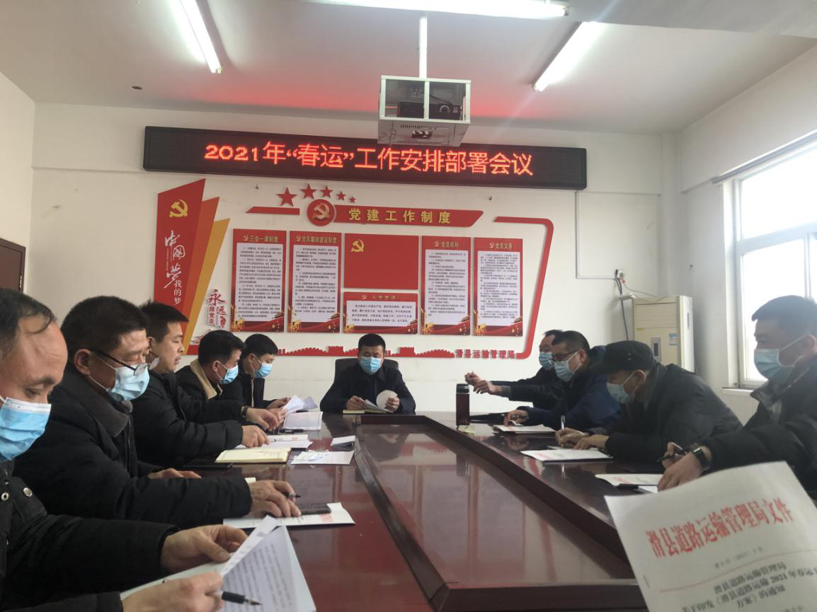 为认真做好我县2021年春运工作,满足人民群众出行需求,保障重点物资正常运输,统筹做好春运工作和疫情防控,努力保障人民群众平安有序出行。1月27日下午,运管局召开2021年春运工作部署会。交通局党组成员、运管局长赵义伟、副局长毛红福、郝云、曹国民、张彦辉,相关科室负责人及六家客运公司、两家货运公司、汽车站负责人共26人参加了会议。会上,郝云副局长传达了《滑县交通运输局2021年春运工作方案》,赵义伟局长就如何落实好春运工作提出具体要求:今年春运从1月28日开始到3月8日结束,在这40天里,我们将围绕统筹做好新冠肺炎疫情防控和春运各项工作这一主题,确保人民群众健康出行、有序出行、安全出行。因近段时间疫情严重,各企业和汽车站要严格落实防疫措施,需要配备的额温枪、消毒液等物品及时落实到位。各公司联系人要做到手机24小时畅通,遇到突发事件及时上报。汽车站和各运输公司要协调好,不能各自为战,及时协商解决疫情防控、运输衔接、应急联动等问题。