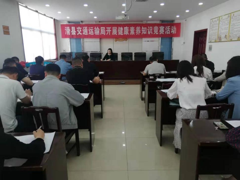 为进一步加强县交通运输局爱国卫生健康教育宣传和创建健康单位工作,不断提高全体干部职工的卫生健康意识,增强自我保健能力,提高文明、健康、科学的生活方式。5月7日上午,滑县交通运输局在局五楼会议室举办了一期“健康素养知识竞赛”活动,活动由副局长王汉洁主持。全体干部职工共54人参加竞赛。