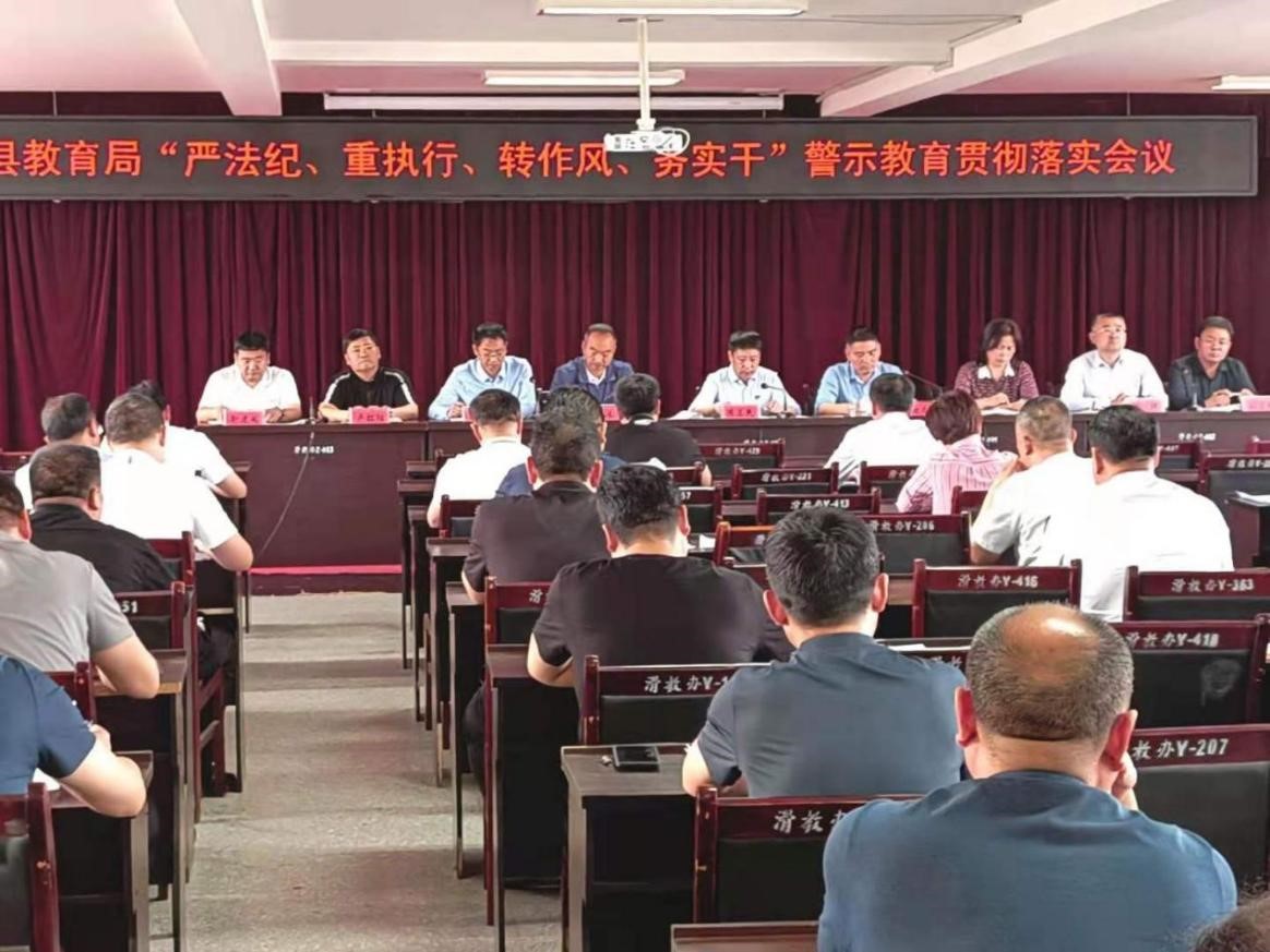 5月12日下午,县教育局召开会议,贯彻落实全县“严法纪、重执行、转作风、务实干”警示教育大会精神,并就以此会议及党史学习教育为契机,在全系统更深入持久开展师德师风教育工作作了安排部署。机关股室及二级机构中层副职以上,全县中心校、局属各学校主要负责人参加了会议。