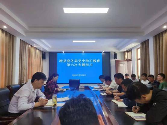 5月18日下午,滑县商务局在二楼会议室开展党史学习教育第六次专题学习,全体机关干部职工参加会议。